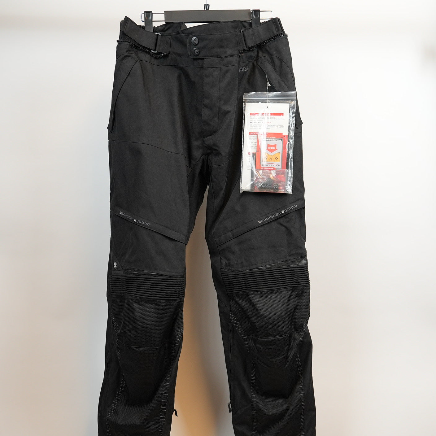Funktion: Touringbyxa utrustad med SAS-TEC knäskydd (EN 1621-1), anti-slip-panel i sätet, reflexdetaljer, stretchpaneler, midje- och benslutjustering samt lång anslutningsdragkedja för kompatibilitet med topp.