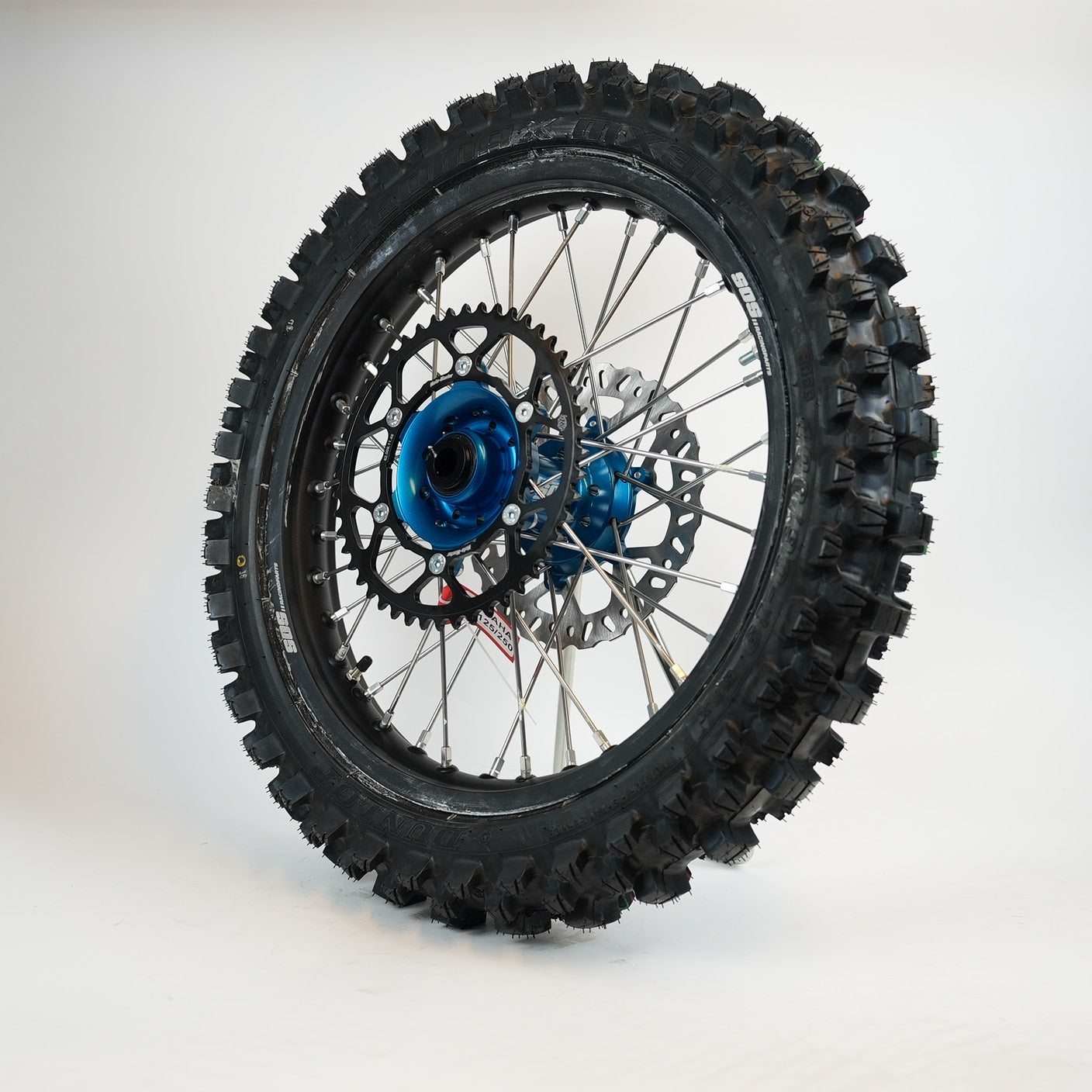 Komplett bakhjul från SOS med Dunlop MX34 100/90-19", Bakdrev 49 Kugg samt Bromsskiva.