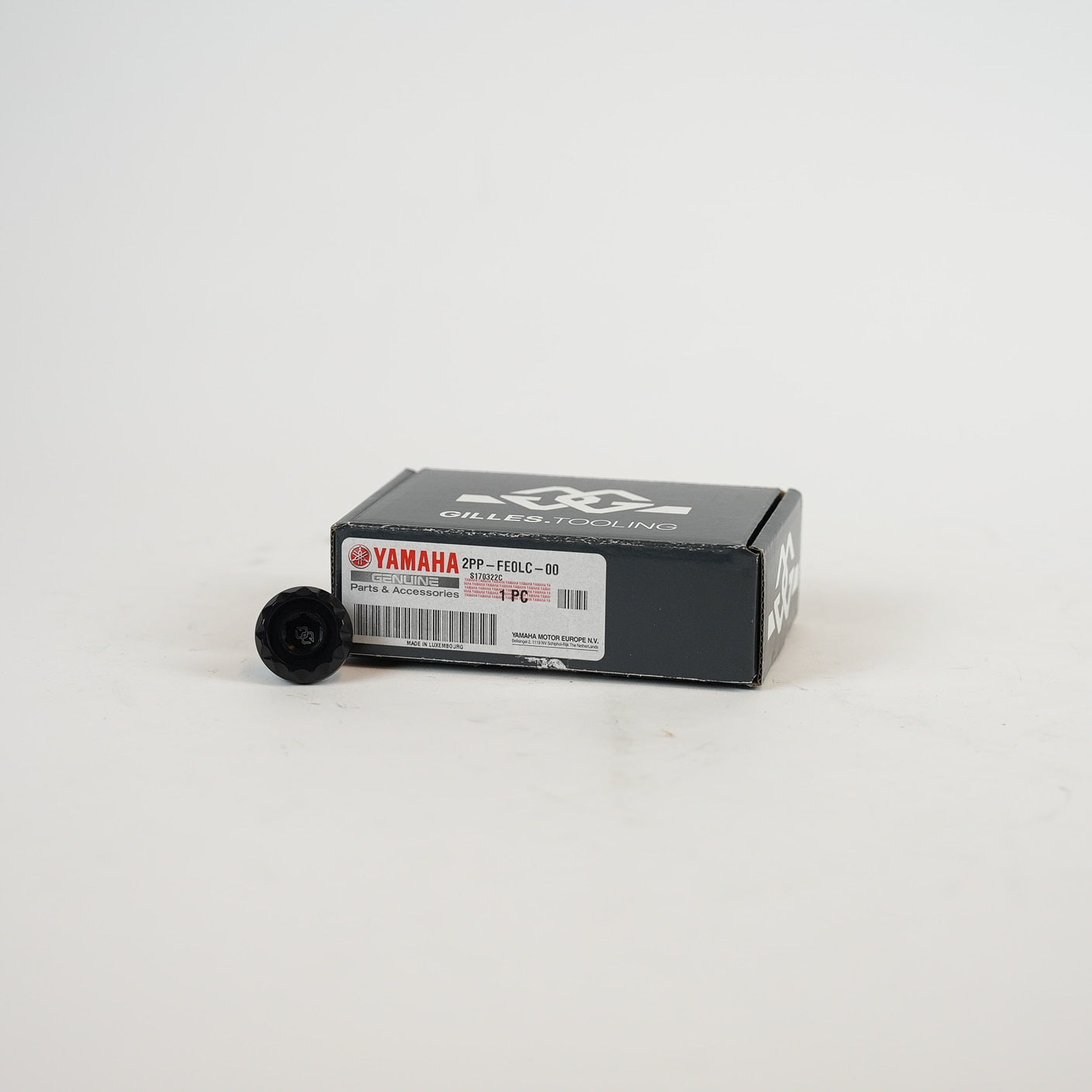 Original Yamaha OEMdel - billetaluminium motoroljepåfyllningslock med tre utbytbara färgringar (titan, blå, röd) från Gilles Tooling, designat för att ersätta standardlocket och ge en personlig finish.